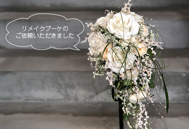 ご自身が大好きなお花を集めて作るブーケももちろん素敵ですが、お母様のブーケをリメイクする選択はすごく思い出になるし、お母様も喜ばれると思います。