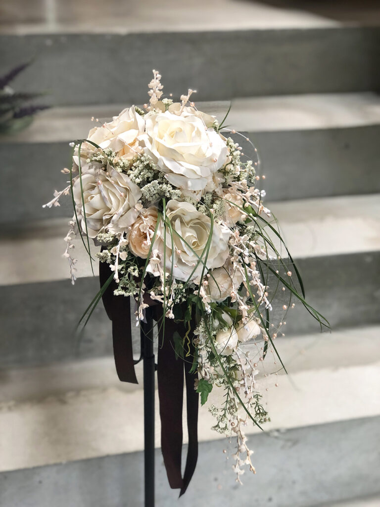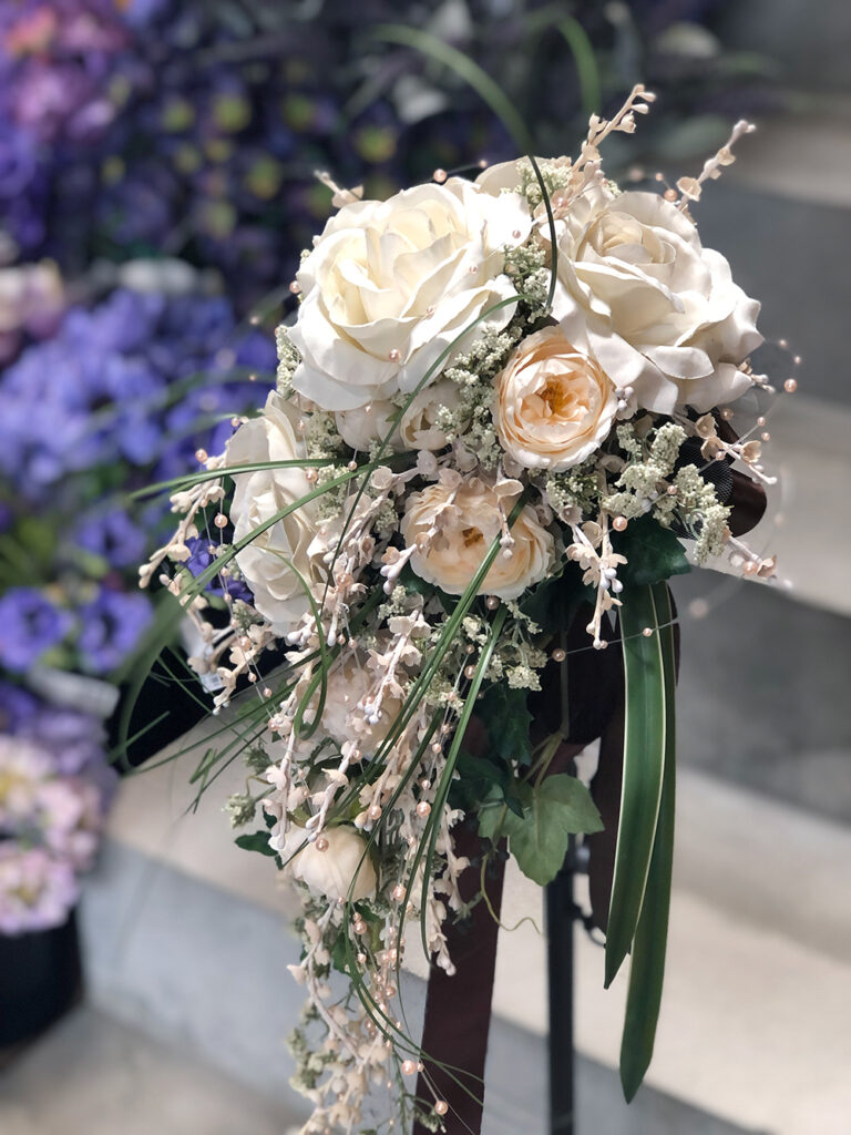 形はキャスケードブーケでエレガントな王道のブーケでした。