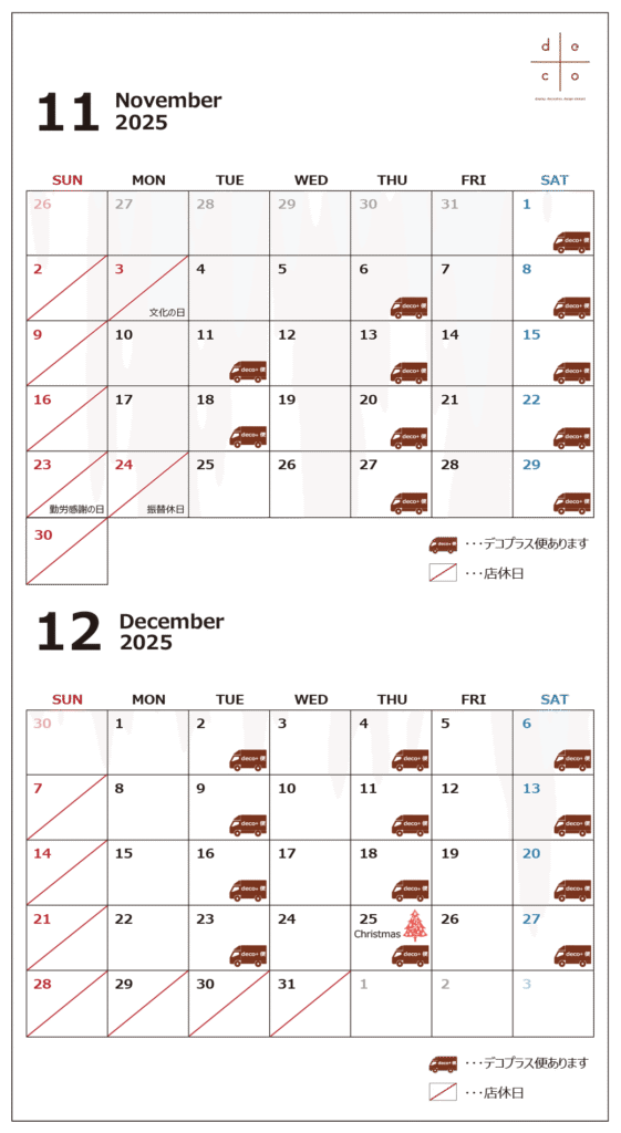 月曜~土曜 9:30~18:00まで営業、 日曜と祝日が店休日です。