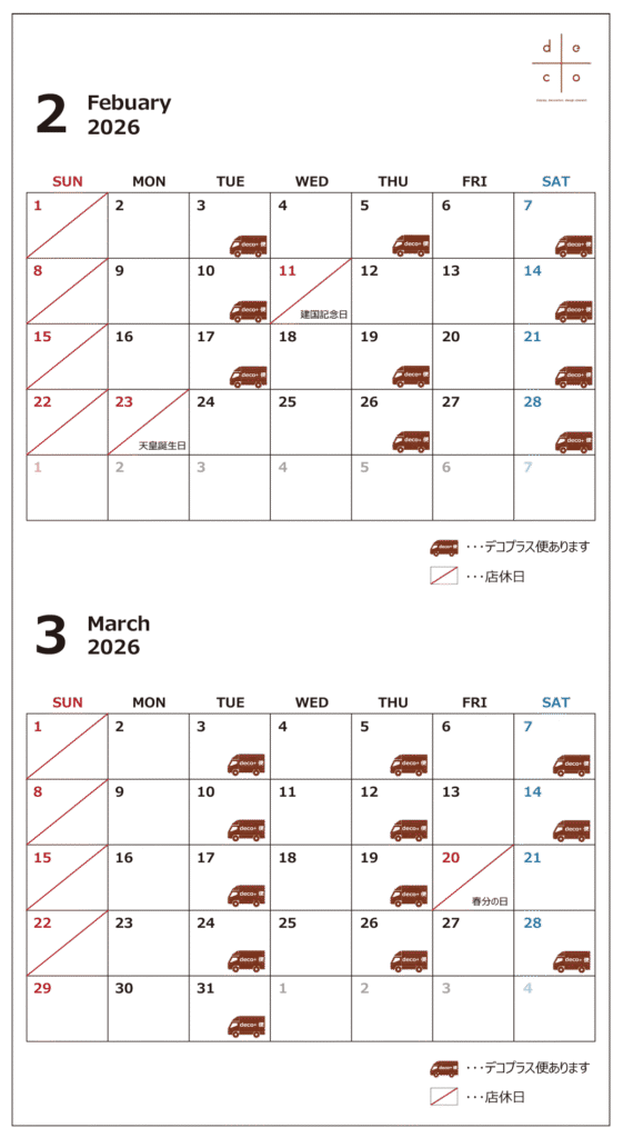 2月、3月の営業日カレンダーです😀