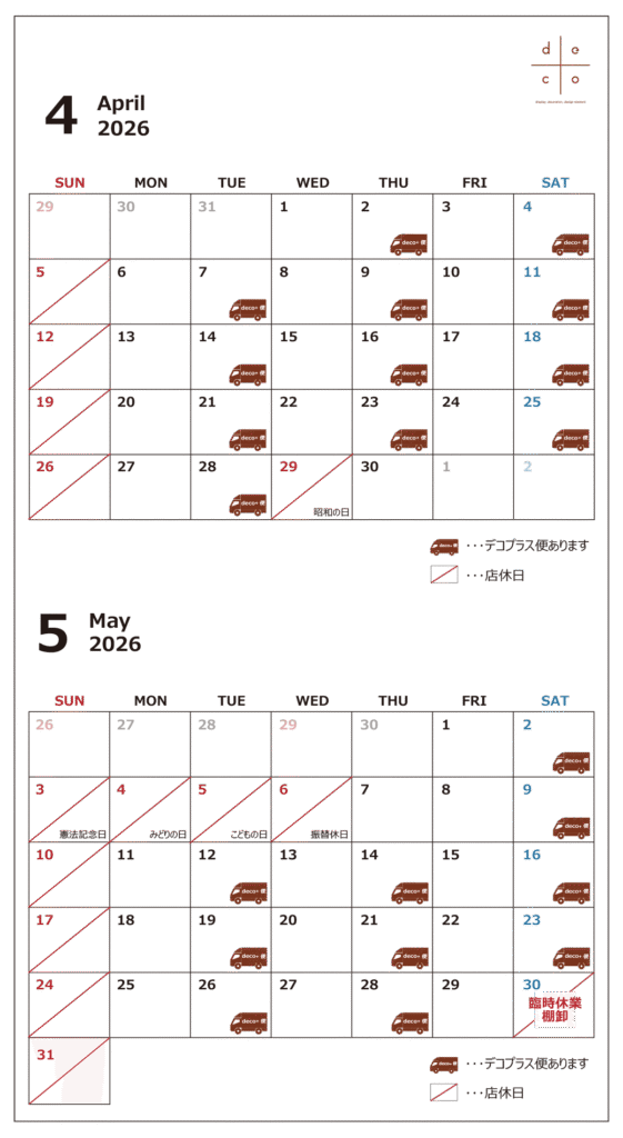 月曜~土曜 9:30~18:00まで営業、 日曜と祝日が店休日です。
