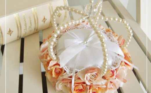 ◇クラウンのリングピロー◇ 小さなバラをふんだんに使ってかわいいリン...
