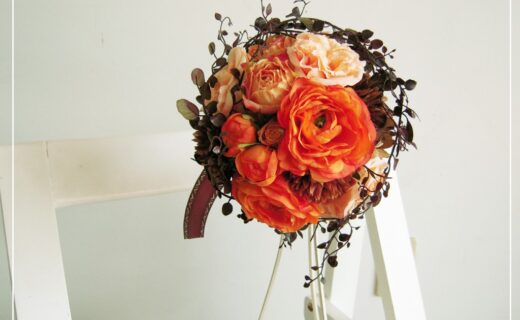 ◇シックなオレンジのラウンドブーケ◇ 秋のウェディングにもピッタリな...