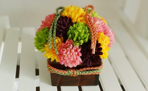 ◇ピンポンマムのリングピロー◇ ピンポンマムを4色使ってカラフルなリ...